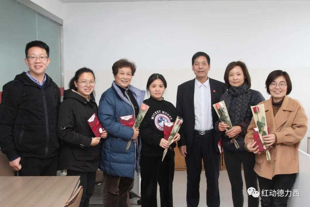 3月8日上午,集团执行副总裁张永、党委书记陈建春等带领群团干部,前往湖头产业园慰问德力西女职工代表,为女职工们送上铿锵玫瑰和温馨贺卡,祝福她们节日快乐,青春永驻。