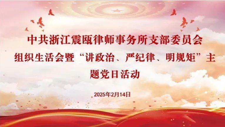 通过此次组织生活会暨“讲政治、严纪律、明规矩”主题党日活动,党员们进一步强化政治意识与纪律观念,明确了“以党建促所建”的行动路径。大家纷纷表示,将以更加饱满的热情和昂扬的斗志,积极投身于党建工作和律师业务中,为推进全面依法治国、服务社会民生贡献更多力量。(浙江震瓯律师事务所)