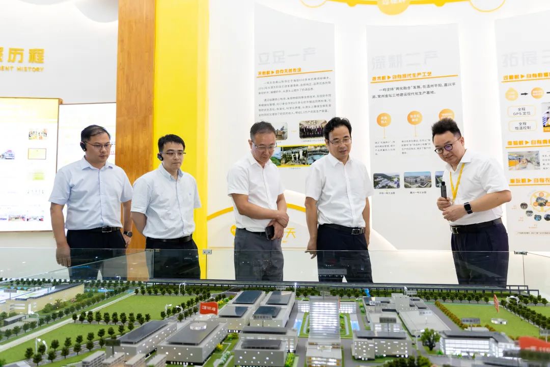严小军书记一行在一鸣党委书记、行政副总蒋明统的陪同下,参观了企业展厅,现场深入智慧工厂观看了智慧一鸣大数据平台,听取了一鸣三产接二连一全产业链发展情况的介绍,并详细了解了一鸣在科技创新、产品研发方面的进展以及党建品牌“四个牛”的深刻内涵与实践成果。