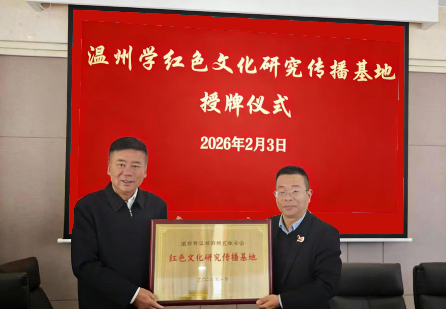 2月3日,“温州学红色文化研究传播基地”在温州市非公有制经济组织和社会组织党务工作者协会成立,温州市人大常委会原主任、温州学研究联合会理事长葛益平为基地授牌。温州市两新党务工作者协会顾问,协会副会长,协会理论研究和讲师团特聘讲师等参加授牌仪式,并围绕“红色文化与传统文化的融合”“基地如何发挥红色文化研究传播作用”等话题进行了探讨。